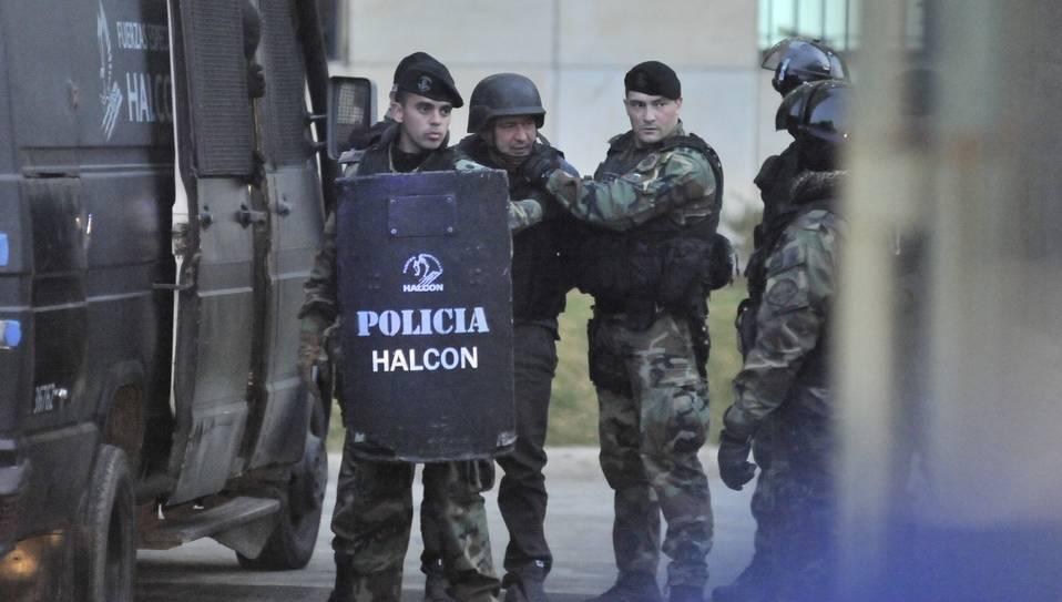 El ex funcionario estaba con chaleco anti balas puesto y rodeado por media docena de agentes del servicio penitenciario.