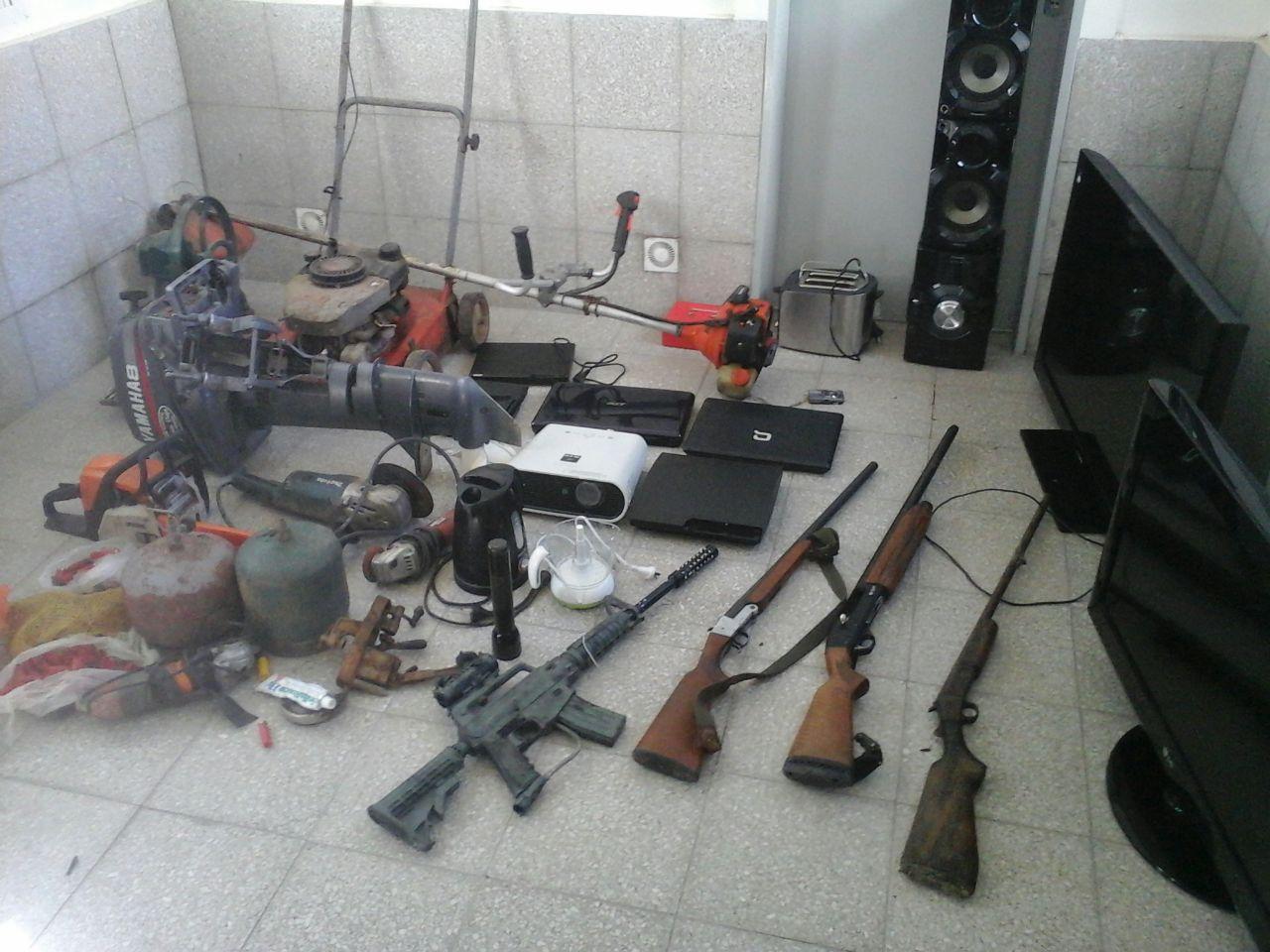 De la primer vivienda se secuestró una caja fuerte que se encontraba violentada -pero no abierta- la que contendría dinero en efectivo y cheques, un pasaporte, una consola playstation, un reproductor de DVD, una notebook y una pistola semiautomática marca Baiquel. En el segundo domicilio, hallaron un equipo de música, una notebook, un tv LCD, dos reproductores de DVD portátiles y varios electrodomésticos, además, una réplica de fusil que funciona a gas comprimido. Finalmente, en la tercer finca se secuestró una motosierra, tres amoladoras y tres garrafas, también, una escopeta calibre 16, una bolsa de cartuchos del mismo calibre y una bolsa de pólvora. Todos los traslados se realizaron a la Comisaría Distrito 19na.