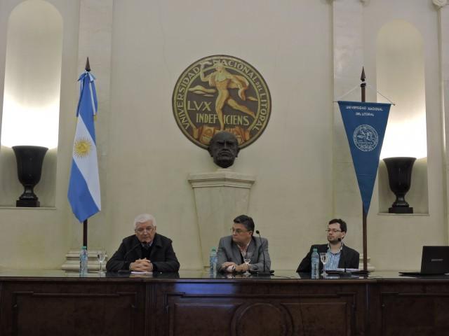 Oscar Picco de la Cooperativa Guillermo Lehmann, comentó que “Podemos decir que entre nuestra empresa y la universidad existe una interrelación que juzgamos muy importante, muy interesante y muy fructífera y que desde nuestro lado, el tema fue solamente animarnos a pensar, en eso pudimos darnos cuenta en cuantas cosas podemos interrelacionarnos y generar sinergias favorables al sector en el cual nosotros actuamos”. Para ampliar agregó “la nuestra es una cooperativa agrícola ganadera cuya ocupación principal es el trato con los productores agropecuarios. Nosotros pensábamos en un principio que los nexos eran exclusivos con la Facultad de Veterinaria y con la Facultad de Ciencias Agrarias de Esperanza, después nos dimos cuenta que aparecían posibilidades de trabajo en equipo, por ejemplo el uso de energías alternativas y trabajamos con un equipo sobre energía solar que soluciona el problema de explotaciones agropecuarias que no tienen energía y ahí intervino la Facultad de Ingeniería Química por ejemplo”.