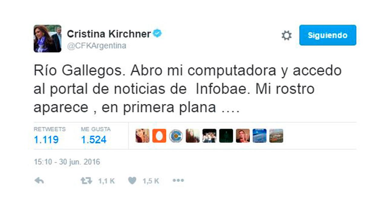 — Cristina Kirchner (@CFKArgentina) 30 de junio de 2016