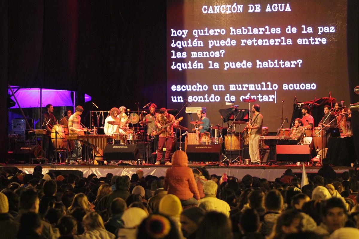 Organizada por la Nación, el Gobierno de la Ciudad y el Gobierno de la Provincia, la celebración comenzó puntual, a las 20, con Emparche Ensamble de Percusión junto a Seba Macchi y Franco Bongioanni como músicos invitados. La destacada agrupación ofreció un espectáculo experimental intenso y de gran impacto, a través de bloques de ritmos, composiciones y versiones propias del cancionero popular. "Es emocionante poder compartir nuestra música en este escenario, en este contexto, junto al Puente y para un público que quizás nunca antes nos había visto. Es una alegría, un honor y un privilegio poder estar acá", expresó el director del ensamble, Jorge Mockert Jr.