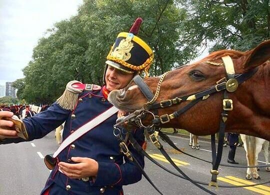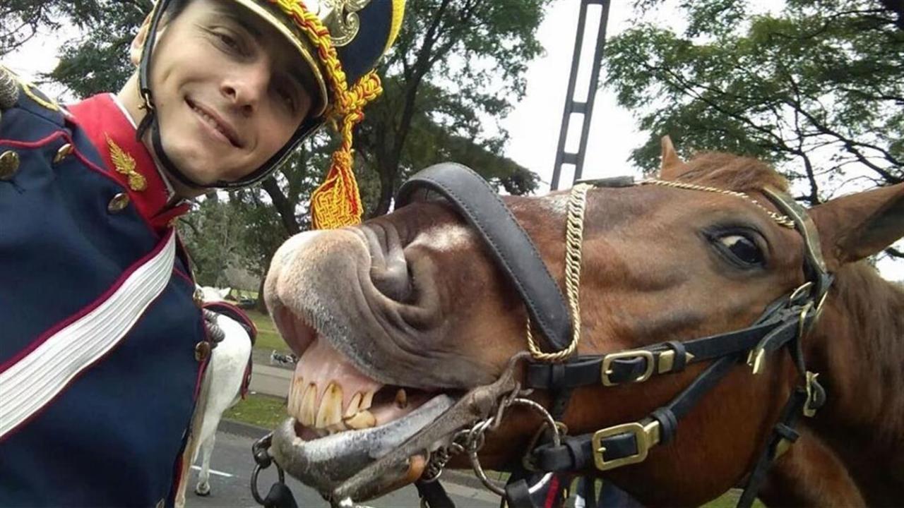 Pero una de las fotos captó especial atención. Es la selfie de un granadero con su caballo, que parece estar sonriendo para la cámara. El autor se la tomó durante el desfile en Palermo y la destacó en su Facebook. También apareció en la cuenta oficial de Twitter de los granaderos e incluso en la del presidenteMauricio Macri. No tardó en viralizarse.