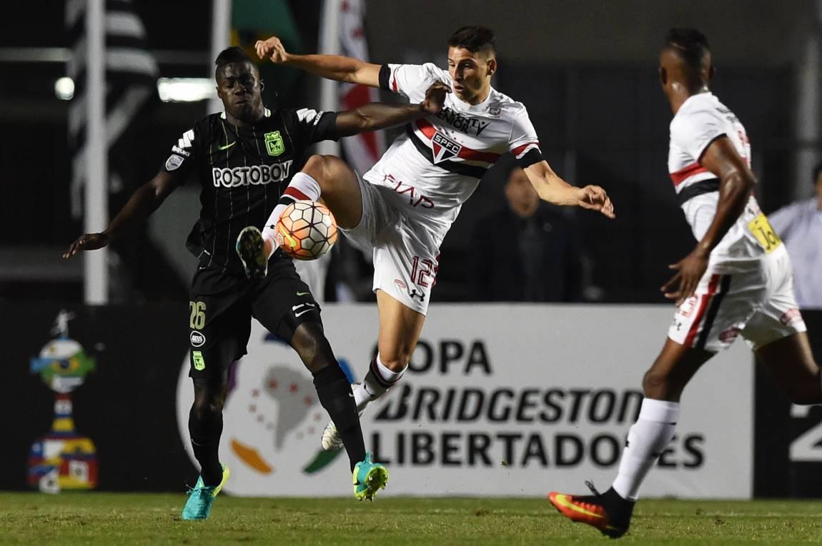 Atlético Nacional, que cuenta en su plantel con los argentinos Franco Armani (arquero, ex-Deportivo Merlo y Ferro) y Ezequiel Rescaldani (ex-Quilmes y Vélez), sorprendió en el encuentro de ida al vencer en el estadio Morumbí a San Pablo, dirigido por Edgardo Patón Bauza, por 2-0 con dos goles del colombiano Miguel Borja, quien pasó en Argentina por Olimpo.