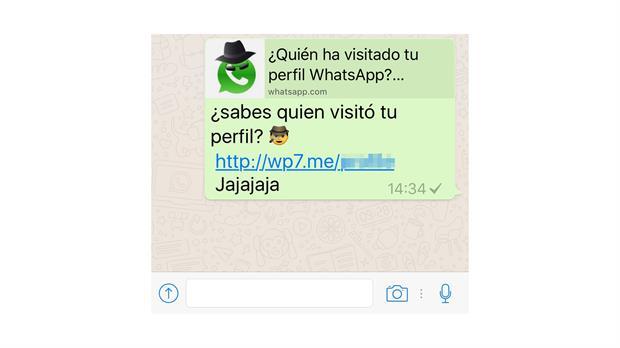 La trampa llega a la víctima por el mensaje de un contacto, que ya tiene su celular infectado, y dice algo parecido a "¿Quién visitó su perfil en WhatsApp?", seguido de un link fraudulento, una verdadera trampa caza incautos: primero, porque no hay perfiles públicos en Whatsapp (sólo datos de contacto que carga el mismo usuario, más la foto que lo identifica); y segundo, porque ni aquí ni en Facebook o Twitter es posible saber quién mira un determinado perfil.
