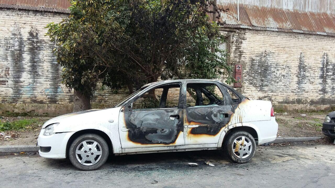 El vehículo siniestrado estaba estacionado en Avellaneda 4165. Se trata de un Chevrolet Corsa modelo 2012 que se prendió fuego casi en su totalidad.