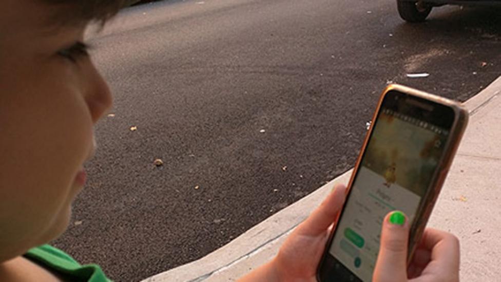 "Después quería ir a buscar más, y caminamos por la calle la calle 30. Había varios adultos cazando pokémon y le dieron consejos como hay uno a la vuelta de la esquina, amigo! Ve a por el!" Y él se reía, les miró y les dio las gracias. Guau!!!!, añadió.