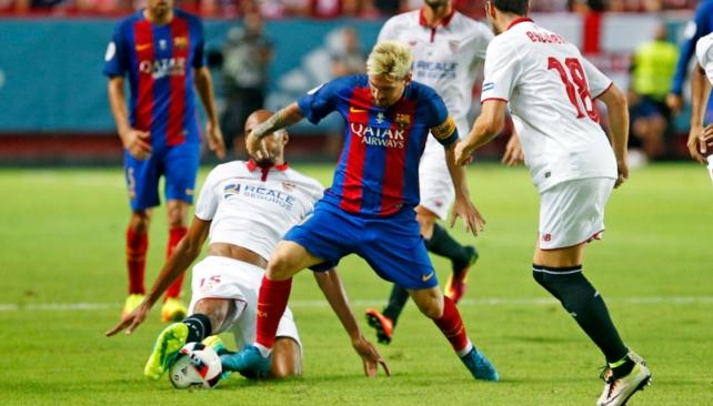 Un gol de Luis Suárez y otro de Munir en la segunda parte le dieron al Barcelona una sustanciosa ventaja 2-0 ante el Sevilla en la Supercopa de España tras disputarse este domingo el partido de ida.