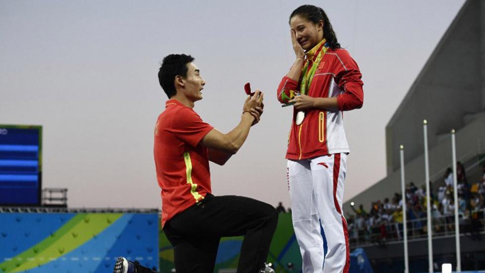Para la china He Zi el domingo 14 de agosto quedará marcado de por vida. Primero se ganó la medalla de plata en la final de saltos de natación desde el trampolín de tres metros, y después se encontró con la sorpresa de su novio, el también saltador Qin Kai, quien le pidió matrimonio delante del públicopresente en el centro acuático Maria Lenk de Río de Janeiro.