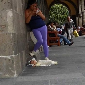 Una usuario de Facebook publicó en su cuenta una foto que se hizo viral:una madre distraída con un celular y su bebé, en el piso.