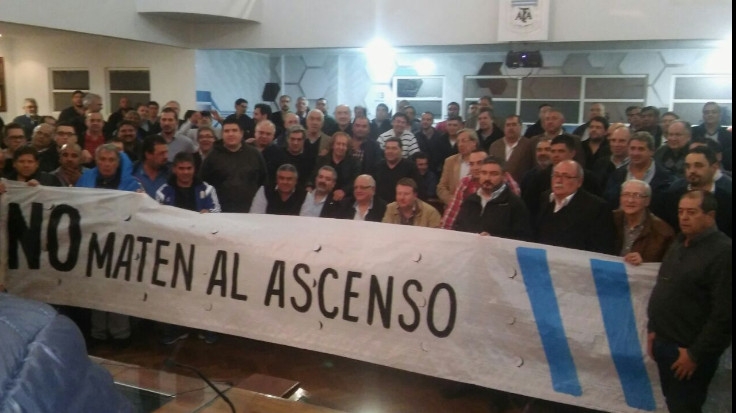 Este plenario nacional que contó con la participación de 39 asambleistas, 9 de las ligas del interior y los 32 restantes de las distintas categorías de AFA, se llevó a cabo esta noche en la sala de reuniones del Comité Ejecutivo ubicada en el el tercer piso del edificio de Viamonte 1.366, donde al término del encuentro los dirigentes extendieron una bandera de enormes dimensiones con la leyenda "No maten al ascenso", algo que por la tarde había hecho en el club Barracas Central, que preside Claudio ''Chiqui'' Tapia, su "amigo personal", el delantero de Boca Juniors Carlos Tevez.