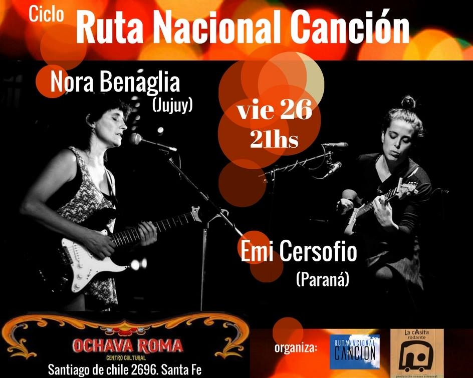 En esta oportunidad la artista en gira será Nora Benaglia (Jujuy) y Emi Cersofio (Paraná) abrirá como artista local. El concierto es el viernes 26 en Ochava Roma, Santiago de Chile 2696, a las 21 hs.