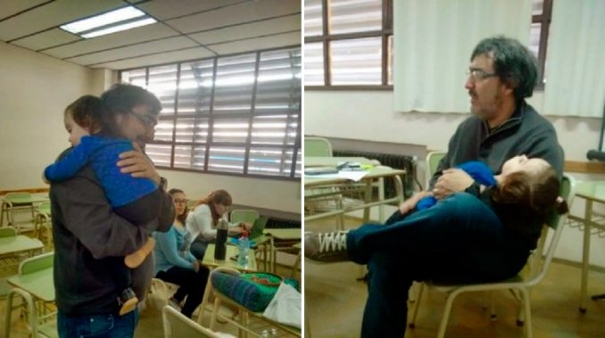 Un docente universitario chubutense tuvo un gesto conmovedor con una alumna: cuidó a su hija durante la clase para que ella pueda tomar apuntes. Tras la difusión de las fotos del hombre con la pequeña, llovieron mensajes de elogio hacia el profesor y a la estudiante por no dejar de cursar.
