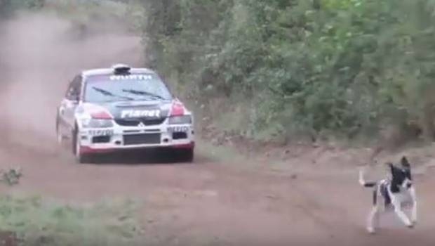 El milagro ocurrió luego de que uno de los piloto agarrara una curva. Inesperadamente se topó con el animal y ya no tenía tiempo ni manera de esquivarlo. Quién sabe si lo vio, pero una lomita le hizo dar el salto en el momento justo: el canino quedó abajo y una vez que el auto lo pasó por encima siguió su camino como si nada hubiera pasado. Todos los perros van al cielo, pero a él aún no le llegó su momento.