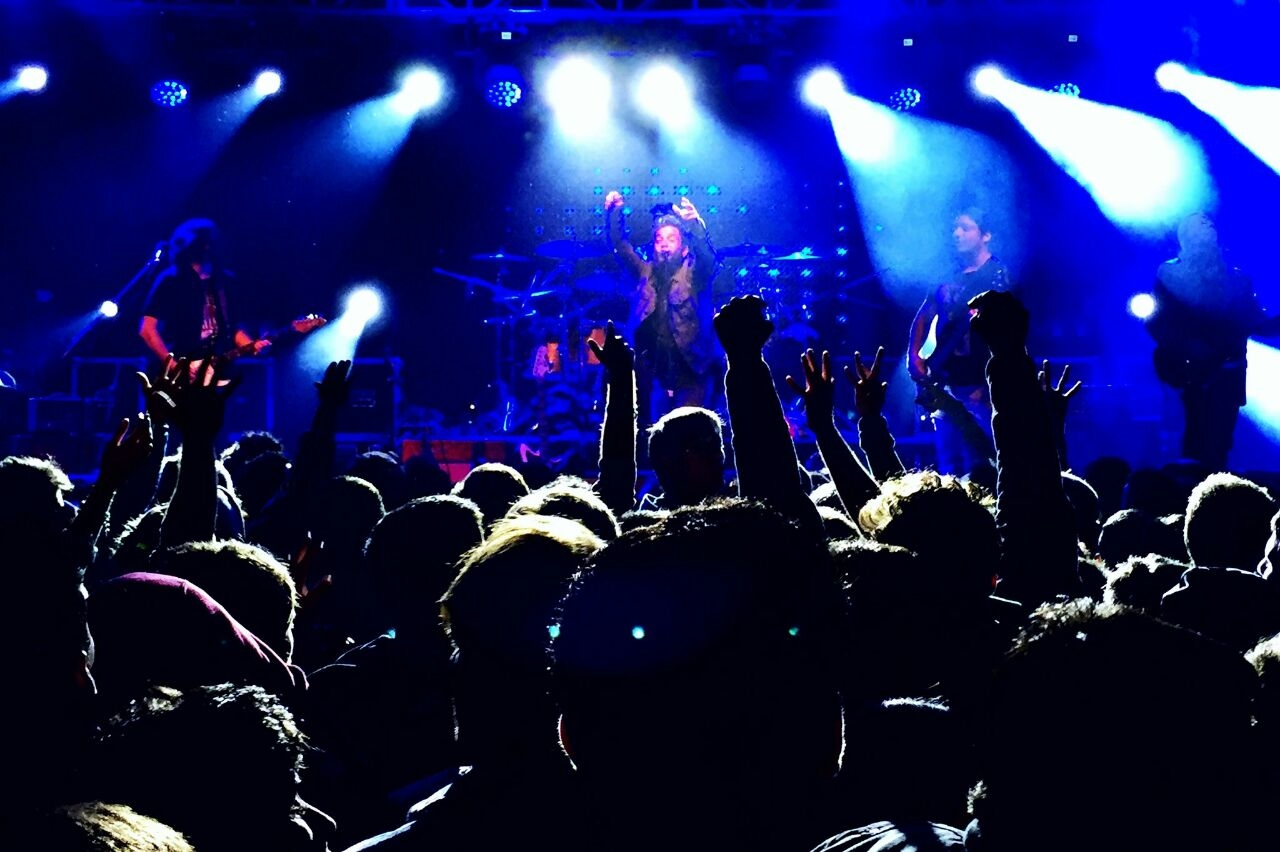 Con una puntualidad casi impropia del género, se produjo el arribo a las tablas del quinteto que integran Pablo Pino (voz), Cristian Narváez (bajo), Diego Almirón y Fernando Aime (guitarras), y Javier Robledo (batería y coros). La bienvenida no tardó en llegar y al unísono del primer riff rockero el público se encendió haciendo flamear trapos por el aire, dando indicios de que la noche se teñiría de un color festivo.