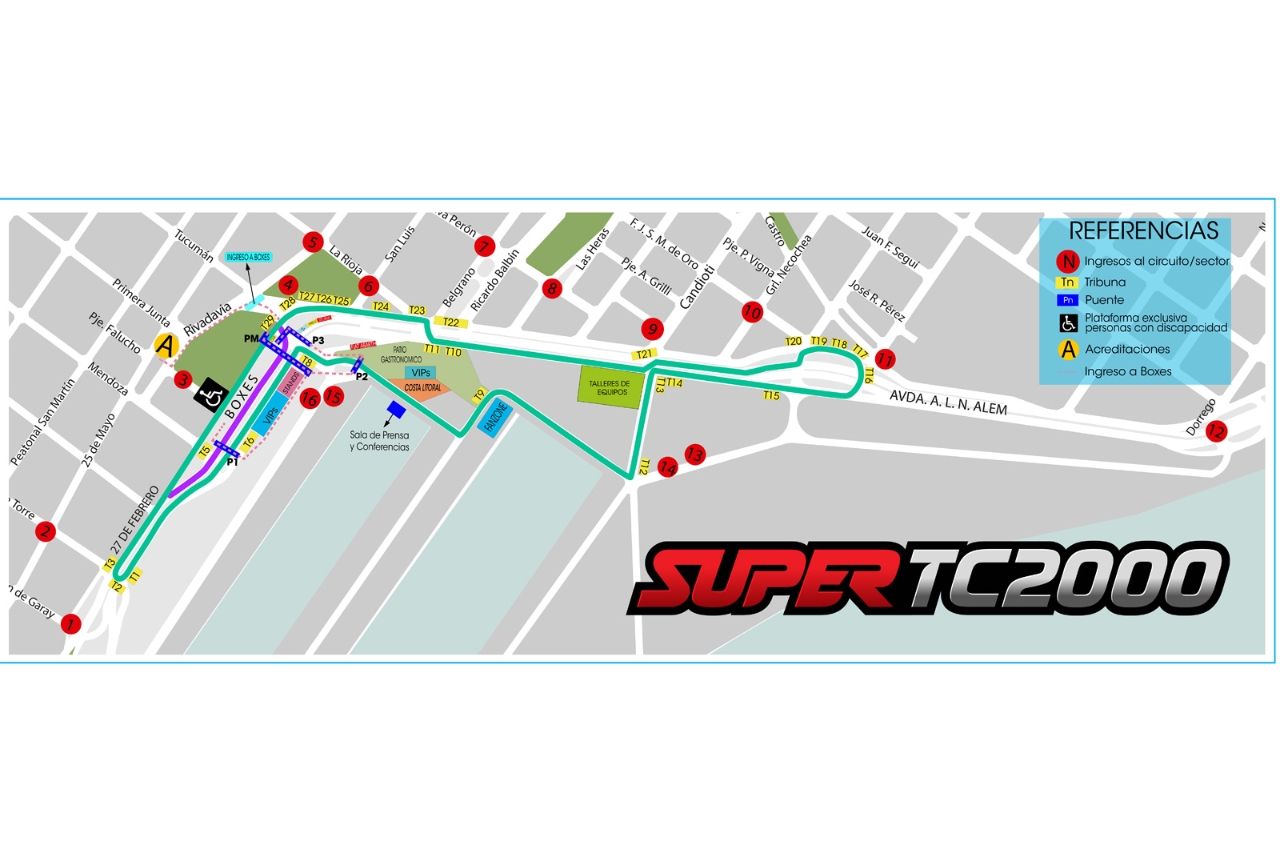 El trazado, montando en plena Ciudad de Santa Fe, contará con 29 tribunas, 16 puertas de acceso, una plataforma exclusiva para personas con discapacidad con capacidad para 300 personas, cuatro puentes peatonales, 500 metros cuadrados de vips, un Fan Zone y más de 15 sponsor locales que se sumaron en esta edición.