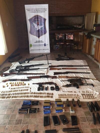 En los operativos, de los que además de efectivos de la Bonarense participaron el Grupo Halcón y la Infantería, además se halló un arsenal: tres fusiles F.A.L, dos ametralladoras, cuatro escopetas calibre 12/70, tres carabinas, dos rifles calibre 44/40, dos revólveres (calibres 38 y 32), municiones de diferentes calibres y un chaleco antibalas perteneciente a la Policía de la Provincia de Buenos Aires.