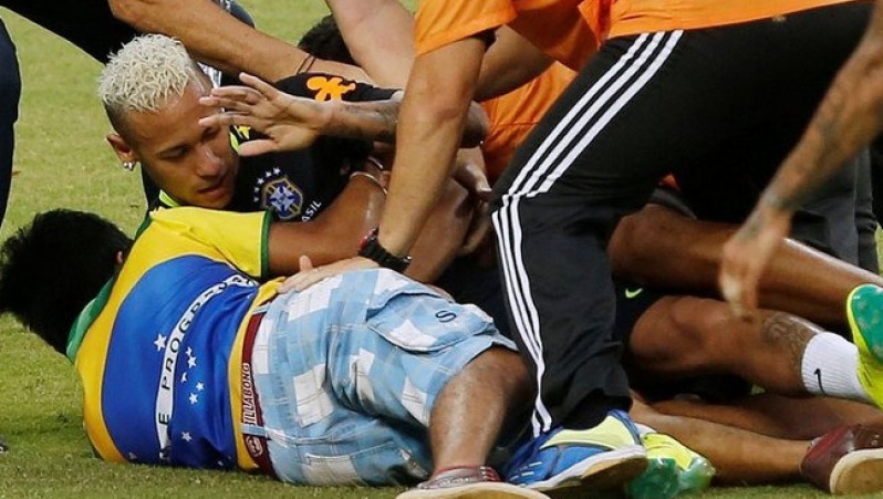 En el medio de la invasión, un hincha se abalanzó contra el delantero del Barcelona que lo abrazó pero cayeron al suelo. No pasó a mayores pero podía haber sufrido una lesión. Lejos de enojarse, Neymar le terminó regalando una camiseta.