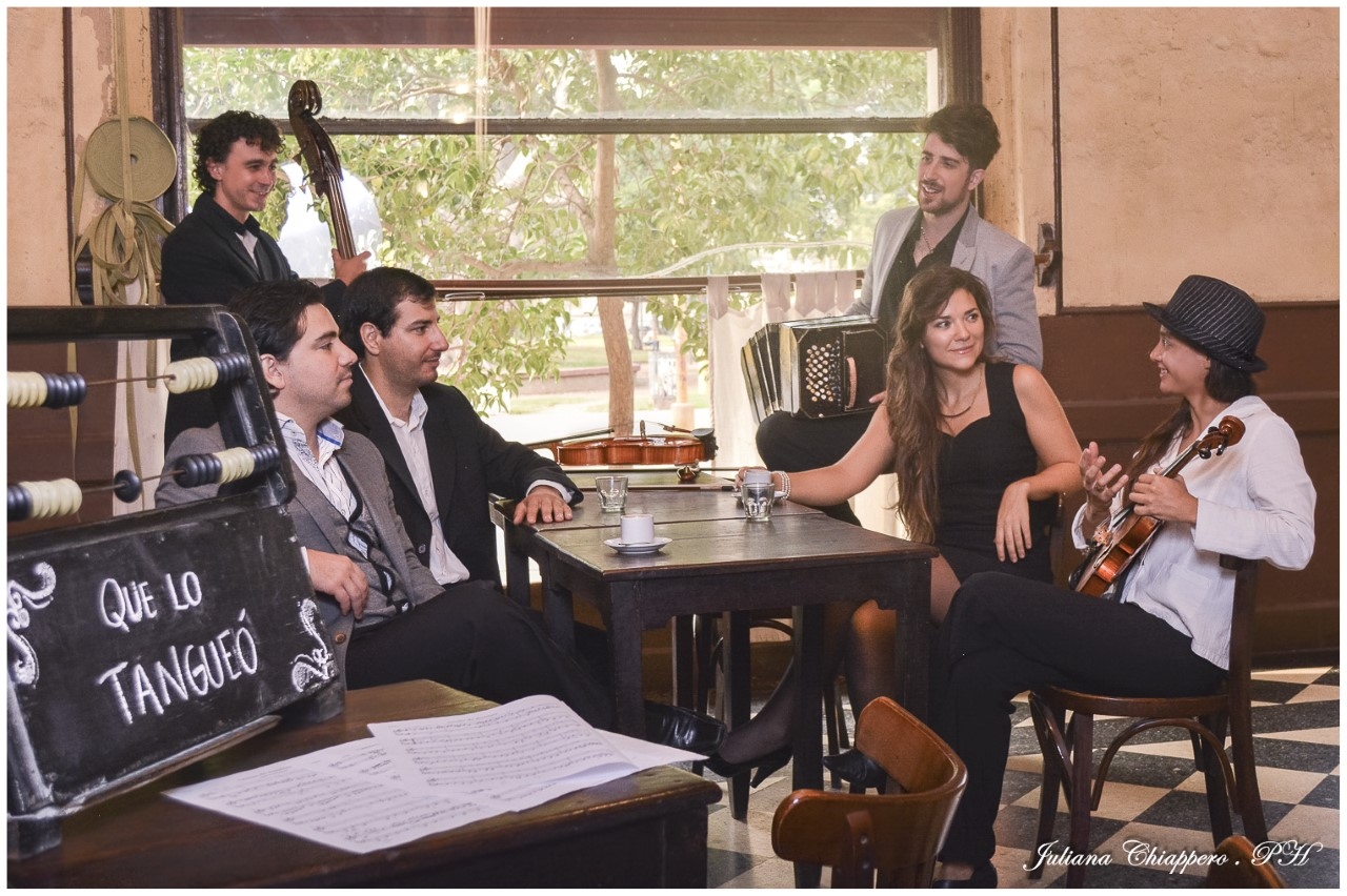 A la gente le suele llamar la atención que  a los jóvenes nos atraiga el Tango, pero nos gusta creer que no es algo tan extraño. Nosotros nos acercamos a esta música porque es “nuestra” y sigue ahí después de todos estos años, después de tanta música que le fue ganando la parada, esperando que la redescubramos. Nosotros somos de acá y así como hablamos de una manera por haber nacido en este lugar, también  existe una forma de “decir” con la música. Cuando hacemos Tango sentimos que estamos hablando nuestro idioma, su ritmo, sus cadencias, su sonido, son cosas que ya las tenés incorporadas, porque las escuchaste de chico, porque siempre formaron parte del paisaje, de las largas reuniones familiares,  entonces podemos soltarnos y expresarnos de otra manera.