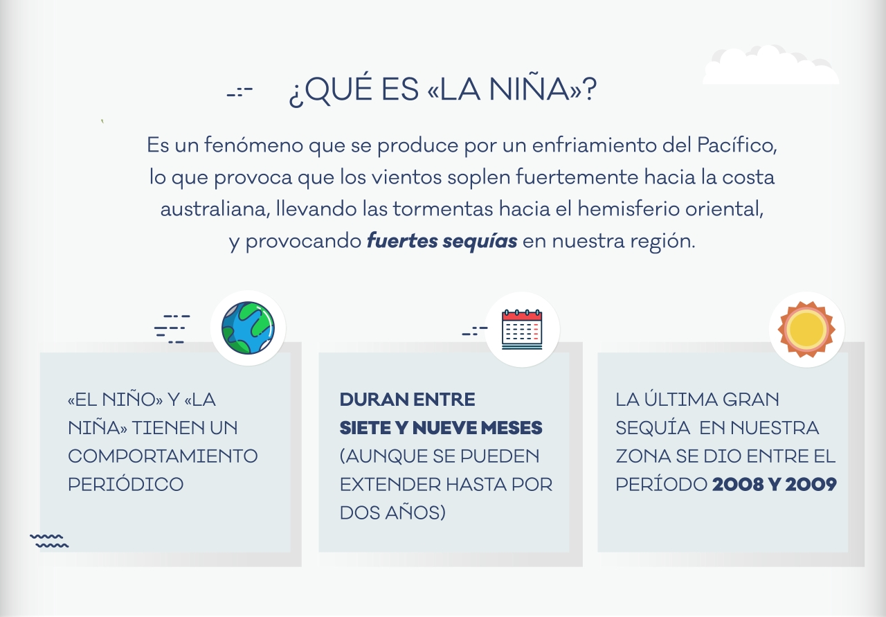 ¿Cómo influye en la región? El evento La Niña se produce por la influencia de una región del Pacífico ecuatorial donde las temperaturas de la superficie del mar son menores a las normales, más frías. Este fenómeno influye sobre nuestra región con probabilidades de que haya menos lluvias. A la vez, en otras zonas de Sudamérica se produce el efecto contrario: Venezuela, Colombia y el norte de Brasil tienen eventos de mucha humedad. No sólo existen eventos El Niño y La Niña sino también períodos neutros en donde las temperaturas de la superficie del mar del Océano Pacífico se mantienen normales. “Este año, la Niña impactaría en Santa Fe, Córdoba, norte de La Pampa, de Buenos Aires... Quizás no lleguen a ser sequías porque hay mucha agua en el suelo por el fenómeno del Ñiño” Enterate de las Claves y pronósticos frente a La Niña![]() Registro histórico de precipitaciones en la región