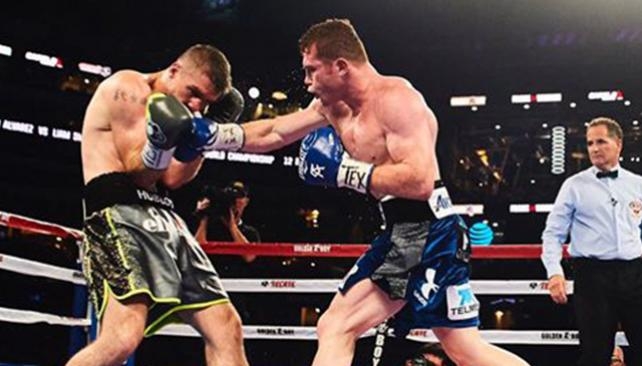 Canelo Álvarez, que salía 7,5 a 1 favorito en la pelea, colocó en el noveno asalto un potente gancho al hígado de Smith que se retorció de dolor sobre la lona del cuadrilátero, donde ya había caído anteriormente en el séptimo y octavo, respectivamente.