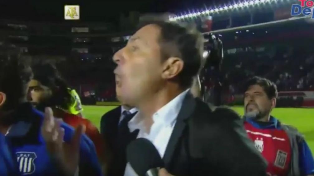 El entrenador de la T, Frank Darío Kudelka, no la pasó bien durante el partido por este episodio que le costó la derrota y tampoco en la zona mixta. Por su pasado en Unión, se cruzó con un hincha sabalero mientras brindaba una entrevista para Paso a Paso.