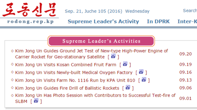Ahí hay una sección dedicada a lo que el líder Kim Jong-un que algunas veces se titula "Actividades del Líder Supremo".