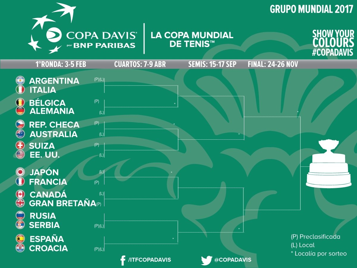 Cabe recordar que la final de la Copa Davis 2016 entre Croacia y Argentina se disputará del 25 al 27 con sede a confirmar.