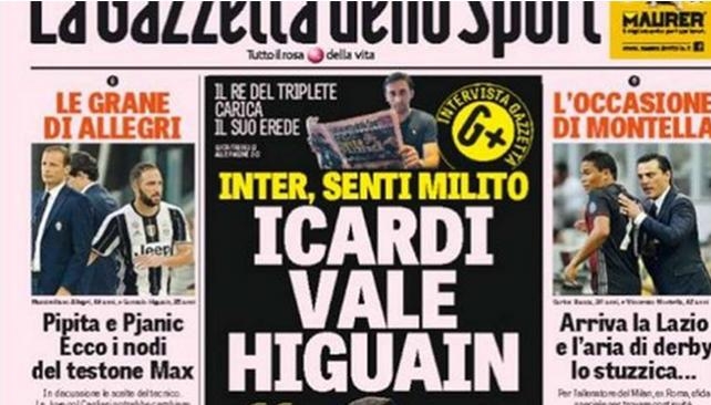 Para finalizar, el ídolo de Racing comparó a Icardi con Gonzalo Higuaín: "Gonzalo tiene más experiencia, ha jugado en el Real Madrid por ejemplo. Pero veo una lucha entre ambos por el título de capocannonieri del Calcio esta temporada. Icardi vale como Higuaín".