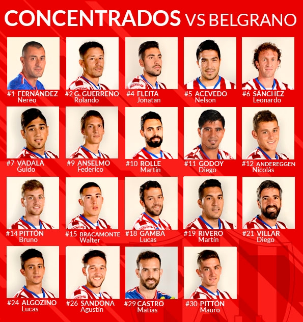 Leonardo Madelón elevó la lista de jugadores que este sábado desde las 20 concentrarán en Casasol para esperar el partido de este domingo, desde las 15, ante Belgrano, en el 15 de Abril, por la cuarta fecha del Torneo de Primera División. Vale recordar que el entrenador confirmó el equipo con los ingresos de Diego Villar y Martín Rolle por Nahuel Zárate (lesionado) y Lucas Algozino, respectivamente.