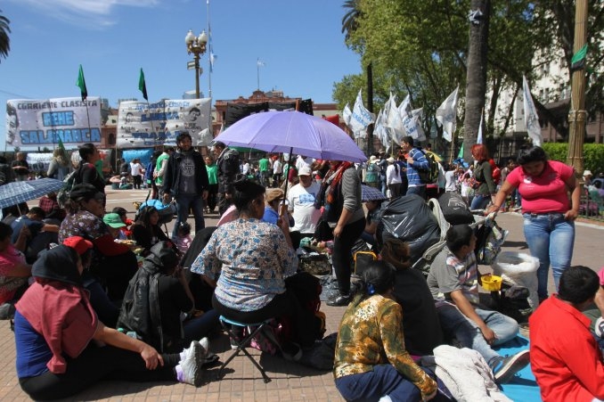 Miembros de organizaciones sociales de Capital Federal y varias provincias comenzaron a instalar este lunes por la tarde "unas 400 carpas" en Plaza de Mayo para protestar contra los "tarifazos" y el "ajuste" del gobierno nacional.