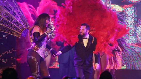 Si bien la obra lleva varios días en cartel, el diputado recién hizo su debut anoche. El espectáculo Plumas en la Noche está encabezado por Moria Casán y cuenta con la participación especial de María Martha Serra Lima, el humor está a cargo de Fernando Ramírez y un cuerpo de bailarinas, entre ellas, Estefanía Bacca, Agostina Caute, Rebeca Vázquez y Bianca Iovenitti.