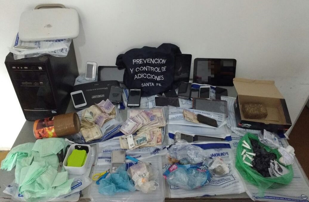 Uno de los procedimientos fue en Amenábar al 4100, en barrio San Lorenzo. En una vivienda del lugar fueron incautados 250 gramos de cocaína, 750 gramos de marihuana, siete celulares, dos balanzas, cuatro tablets, dos netbook y una CPU, entre otros elementos.