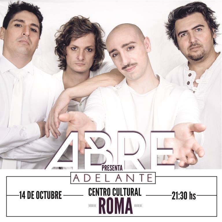 Abre presenta Adelante, su último material discográfico, el viernes 14 de octubre. Será en el Centro Cultural Roma (San Jerónimo 2673) a las 21:30. Las anticipadas con descuento tienen un valor de $100 y se consiguen en el lugar del show y en Casa de Música Domene (9 de Julio 3098).