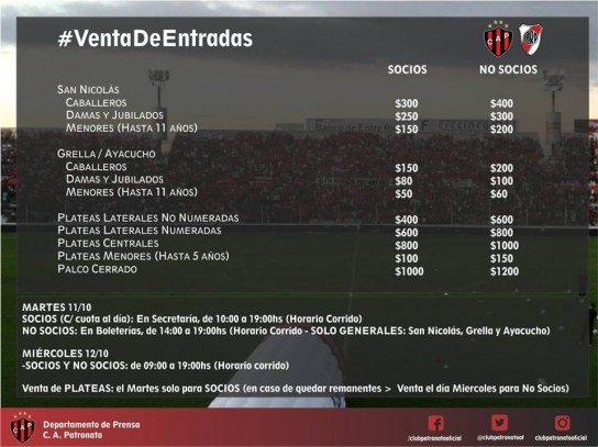 Patronato recibirá el próximo domingo 16/10 en el Estadio Grella a River Plate por la 6ta fecha del Torneo Primera División, el rojinegro necesita sumar y será un partido más que importante para poder salir adelante junto a su gente y en su cancha.