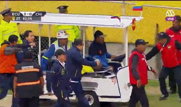 Este sucedió minutos después que fuera cambiado a los 81' por Jaime Ayoví. El futbolista fue retirado en camilla aduciendo una lesión y rápidamente traslado a la ambulancia para abandonar el recinto deportivo. Miembros de la policía corrieron a detenerlo, pero Enner Valencia fue subido a la ambulancia y luego traslado a un hospital local.
