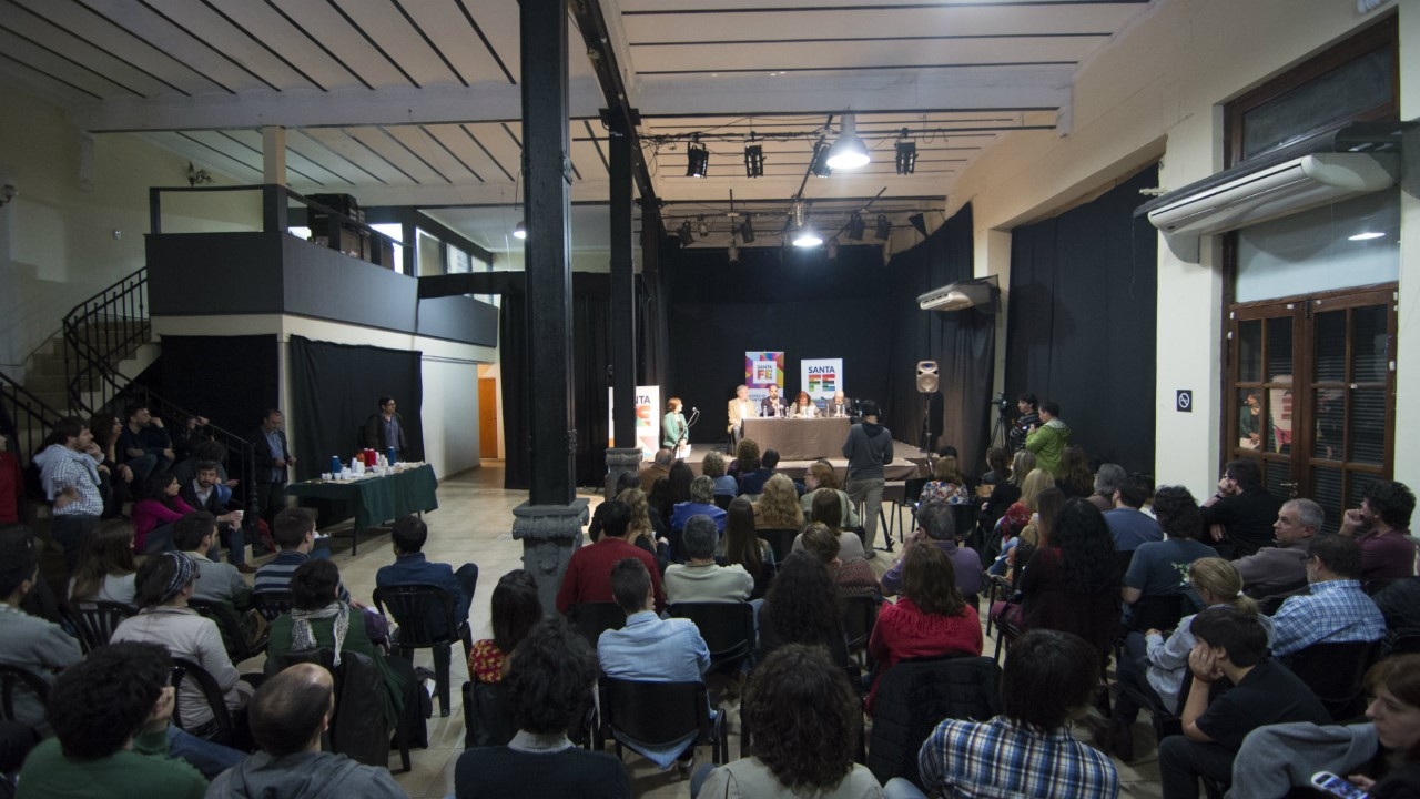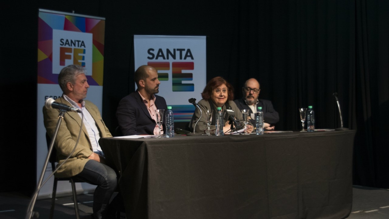 Encabezaron el acto junto a la titular de la cartera cultural, el secretario de Desarrollos Culturales, Paulo Ricci; el secretario de Producciones, Industrias y Espacios Culturales de Santa Fe, Pedro Cantini y el secretario General de Programación Sociocultural y Educativa, Alejandro Tejeda.