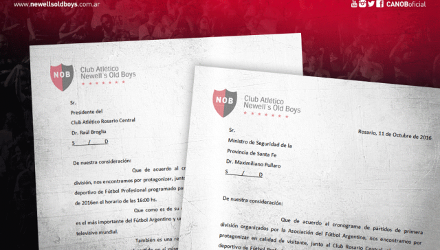 Apelando a la calidad de hincha y dirigente, Newell’s le solicitó a Broglia que acceda al pedido, manifestando –entre otros puntos– la trascendencia que el clásico tiene como espectáculo a nivel nacional e internacional debido al folklore que se vive en las tribunas.