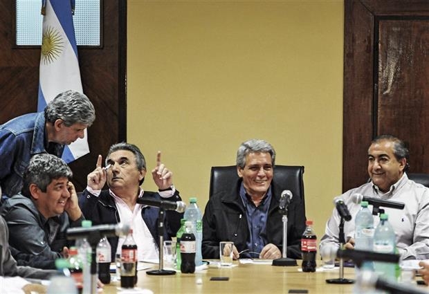 Esta postura es promovida por Héctor Daer y Carlos Acuña, dos de los tres integrantes del triunvirato de mando de la CGT. Se opone Juan Carlos Schmid, presionado por el moyanismo para activar la medida de fuerza. La intención de Daer y Acuña es mantener viva la negociación e intentar acordar con el Gobierno y los empresarios un bono universal para el fin de año, además de debatir sobre otras cuestiones no tan urgentes, como la apertura de las importaciones.