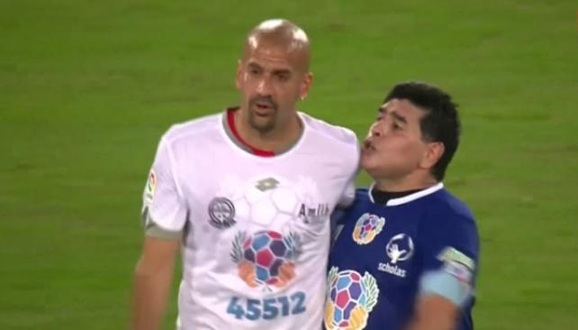 En pleno partido por la paz, encuentro organizado por el Papa Francisco en Italia, Diego Armando Maradona y Juan Sebastián Verón se cruzaron de forma poco amistosa mientras abandonaban el campo de juego al finalizar la primera parte.
