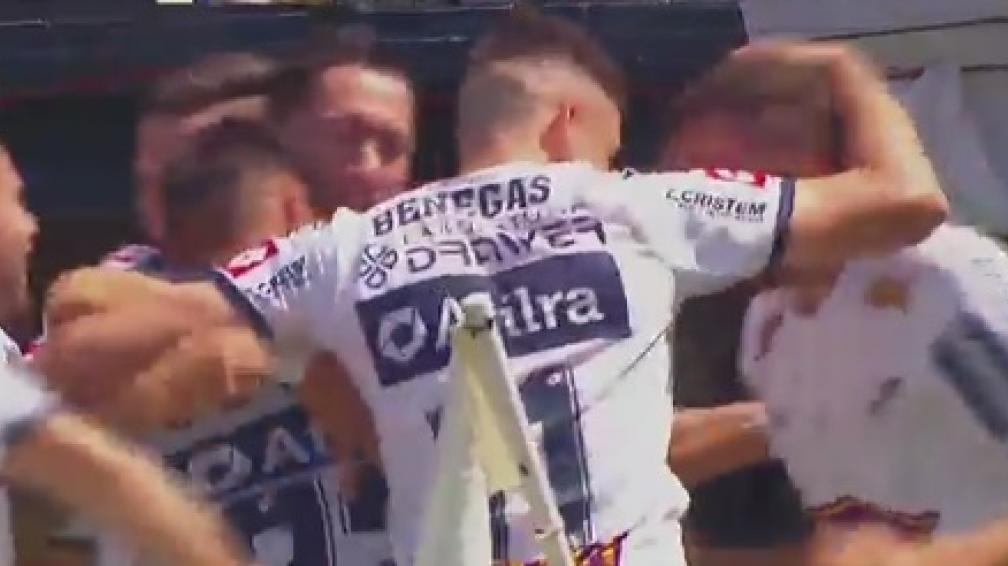 Los de Grelak golpearon en el inicio del partido, cuando la visita había iniciado dominando el juego. Tiro libre de Gabriel Ramírez al segundo palo, donde apareció libre de marca Matías Escobar y la bajó para la aparición goleadora de Bottino. El primer tiempo siguió siendo de amplio dominio granate, que tuvo la más clara en un tiro libre donde Marcelo Herrera apareció solo en el área y la tiró afuera de sobrepique. Promediando el primer tiempo, el partido estuvo detenido por cinco minutos por un proyectil que golpeó a Fernando Monetti.