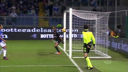 El aparato que llevan los árbitros en su muñeca, y que vibra y se ilumina cuando el balón cruza la línea de meta, se activó indicando que aquella acción debía considerarse como gol para la Sampdoria.