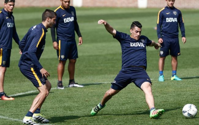 Guillermo Barros Schelotto mezcló titulares y suplentes en un fútbol informal de 12 contra 12. Apenas iniciado el juego, el volante uruguayo sufrió un golpe (al igual que la semana pasada) y tuvo que abandonar la práctica.