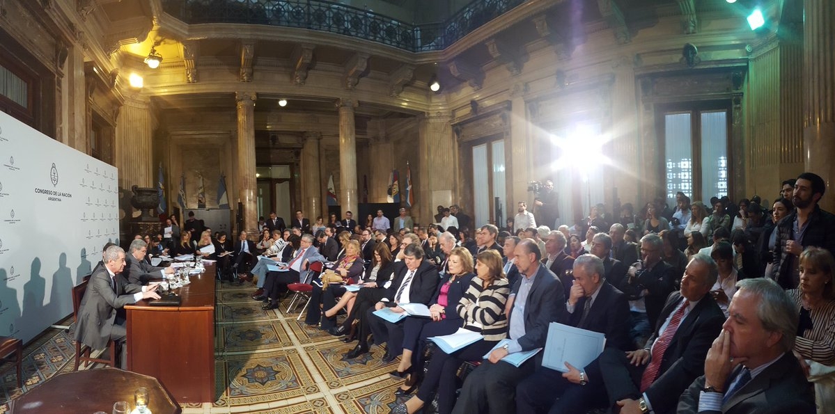 El debate se desarrolla en el salón de las Provincias del Palacio Legislativo, en un plenario de las comisiones de Asuntos Constitucionales, Justicia y Asuntos Penales y Presupuesto y Hacienda, presidido por el senador nacional Marcelo Fuentes, del Frente para la Victoria (FPV).