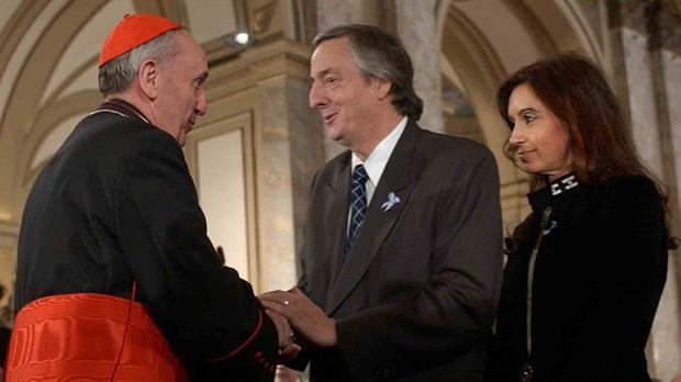 Ante una pregunta sobre la homilía realizada por el entonces cardenal Bergoglio el 27 de octubre de 2010, en memoria de Néstor Kirchner, fallecido ese día, Francisco es sincero. No oculta la existencia de un pasado conflictivo con el ex presidente argentino (2003-2007). "Sí, él realmente no me soportaba. Las relaciones eran muy tensas. Cuando supe que había muerto, a las tres de la tarde, dos horas después hice una conmemoración en la catedral", evoca. "Esa homilía era improvisada: no había preparado el texto escrito. Invité al pueblo y la Iglesia estaba llena. No había nadie del gobierno. El clima era tenso: durante la misa alguien me gritó algo. Le dije que estábamos ahí para rezar porque él había sido ungido por su pueblo con las elecciones para gobernar el país. El pueblo lo había elegido y ahora debía rezar por él", agrega.