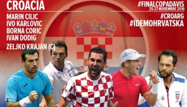 Los tenistas Marin Cilic (7 del ranking mundial de la ATP), Ivo Karlovic (20), Borna Coric (48) e Ivan Dodig (11 en dobles) fueron designados hoy para integrar el equipo de Croacia que jugaŕá la final del Grupo Mundial 2016 de la Copa Davis ante la Argentina, en Zagreb, el 25, 26 y 27 de noviembre.
