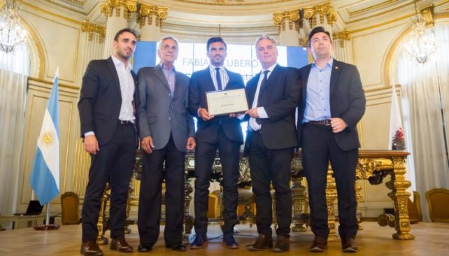 La ceremonia, que estuvo organizada por el diputado Daniel Del Sol, se llevó a cabo en el Salón Dorado del Parlamento y comenzó con la proyección de un video que repasó los momentos más importantes de la carrera futbolística de Cubero con la camiseta de Vélez.