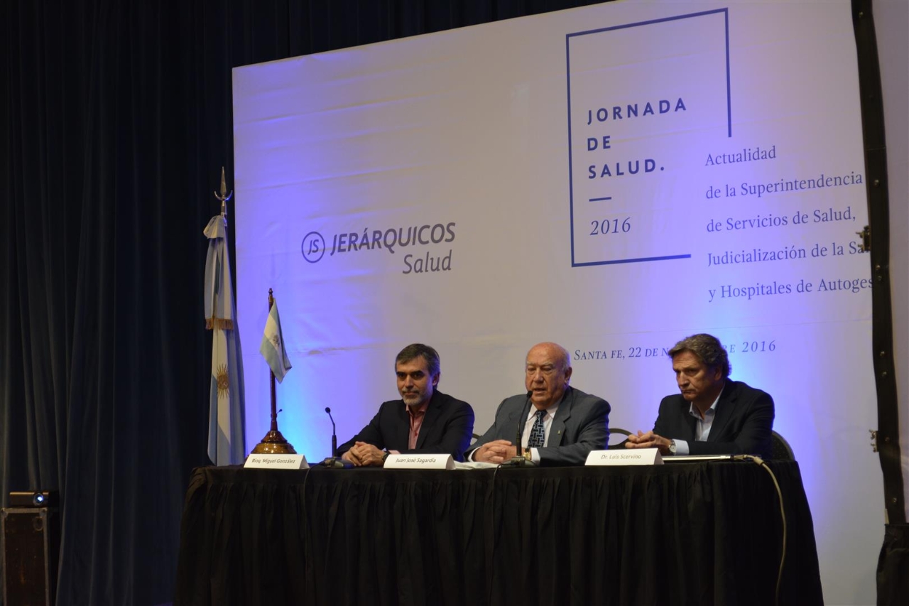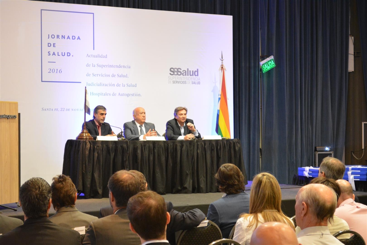 Con la presencia del Superintendente de Servicios de Salud Dr. Luis Scervino, el ministro de Salud de la Provincia de Santa Fe Bioq. Miguel González, el presidente del Instituto Nacional de Asociativismo y Economía Social (INAES) Dr. Marcelo Collomb, el presidente de la Obra Social Jerárquicos Salud Juan Sagardía, así como los principales asesores de y gerentes de la Superintendencia de Servicios de Salud se llevó adelante la Jornada de Salud: “Actualidad de la Superintendencia de Servicios de Salud, Judicialización de la Salud y Hospitales de Autogestión”.