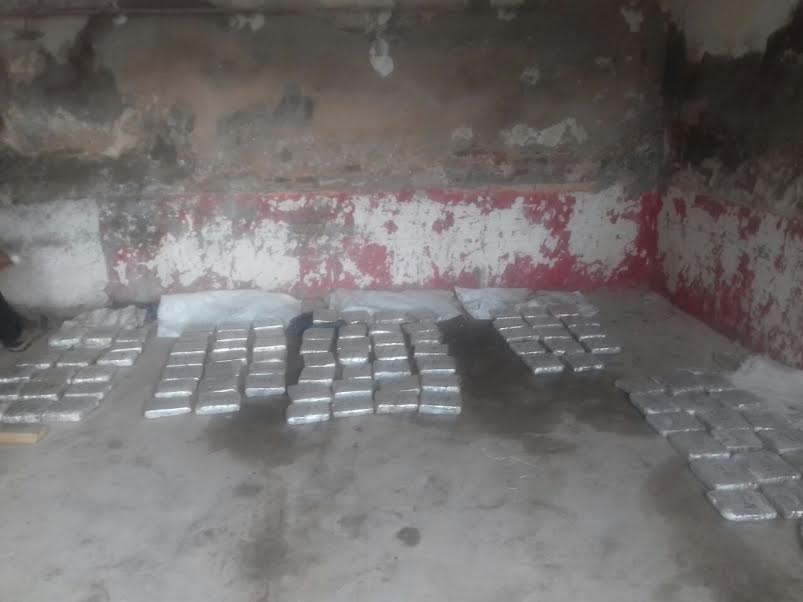 Incautaron siete grandes bultos que en su interior tenían la totalidad de 127 panes compactos de marihuana.