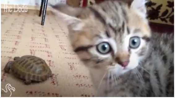El encuentro entre una cría de gato y una tortuga triunfa en la red social Facebook, donde acumula 32 millones de reproducciones desde que se publicó en el perfil de The Dodo.