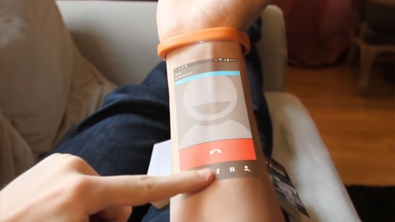 El proyecto se llama Cicret bracelet. Se trata de una pulsera que proyecta con notable fidelidad la pantalla del teléfono (Android o iPhone) al que está conectado en el antebrazo de la persona que lo lleva puesto. La pulsera es resistente al agua así que es utilizable en casi cualquier circunstancia y permite hacer llamadas telefónicas o escribir un mensaje de texto mientras se está bajo la ducha.